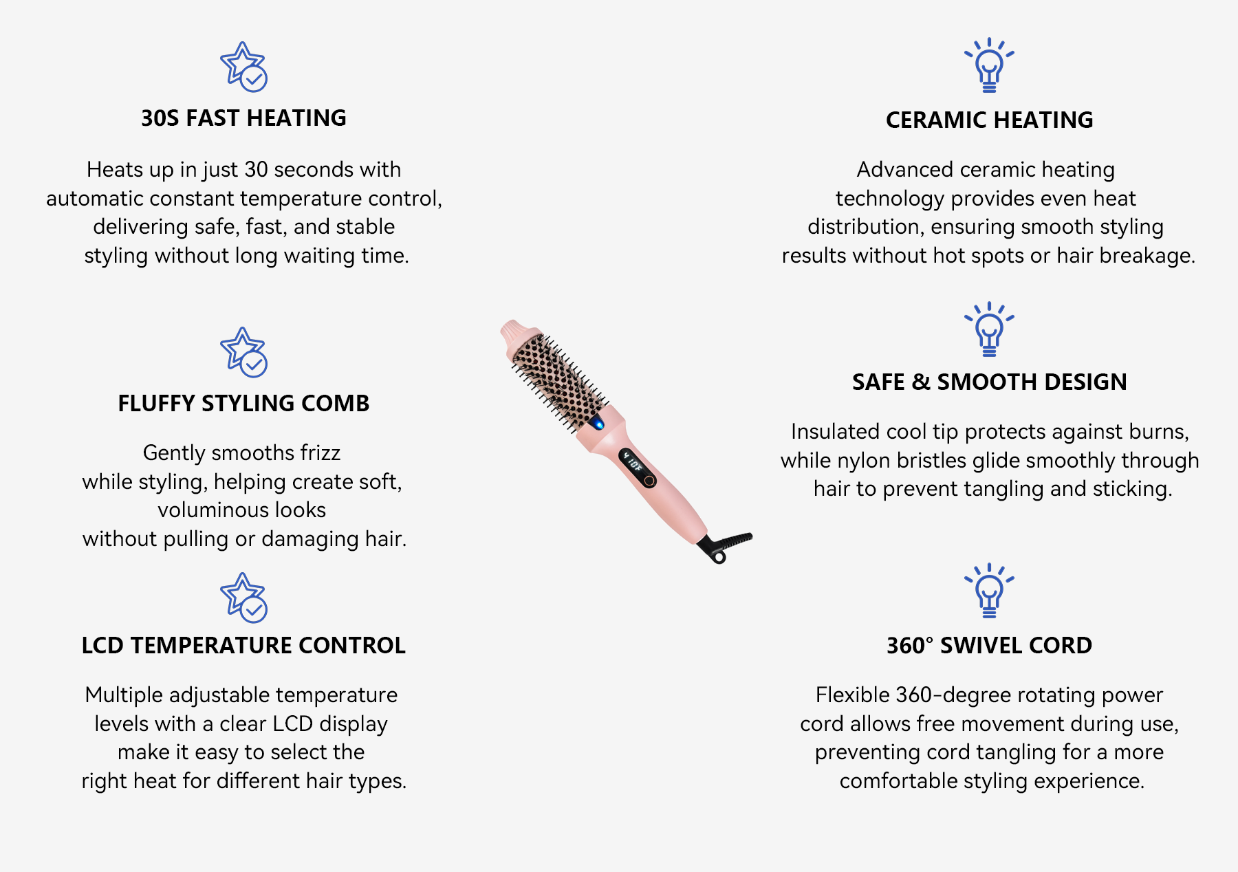 - 30s Fast Heating - Heats up in just 30 seconds with automatic constant temperature for safe, fast, and stable styling.