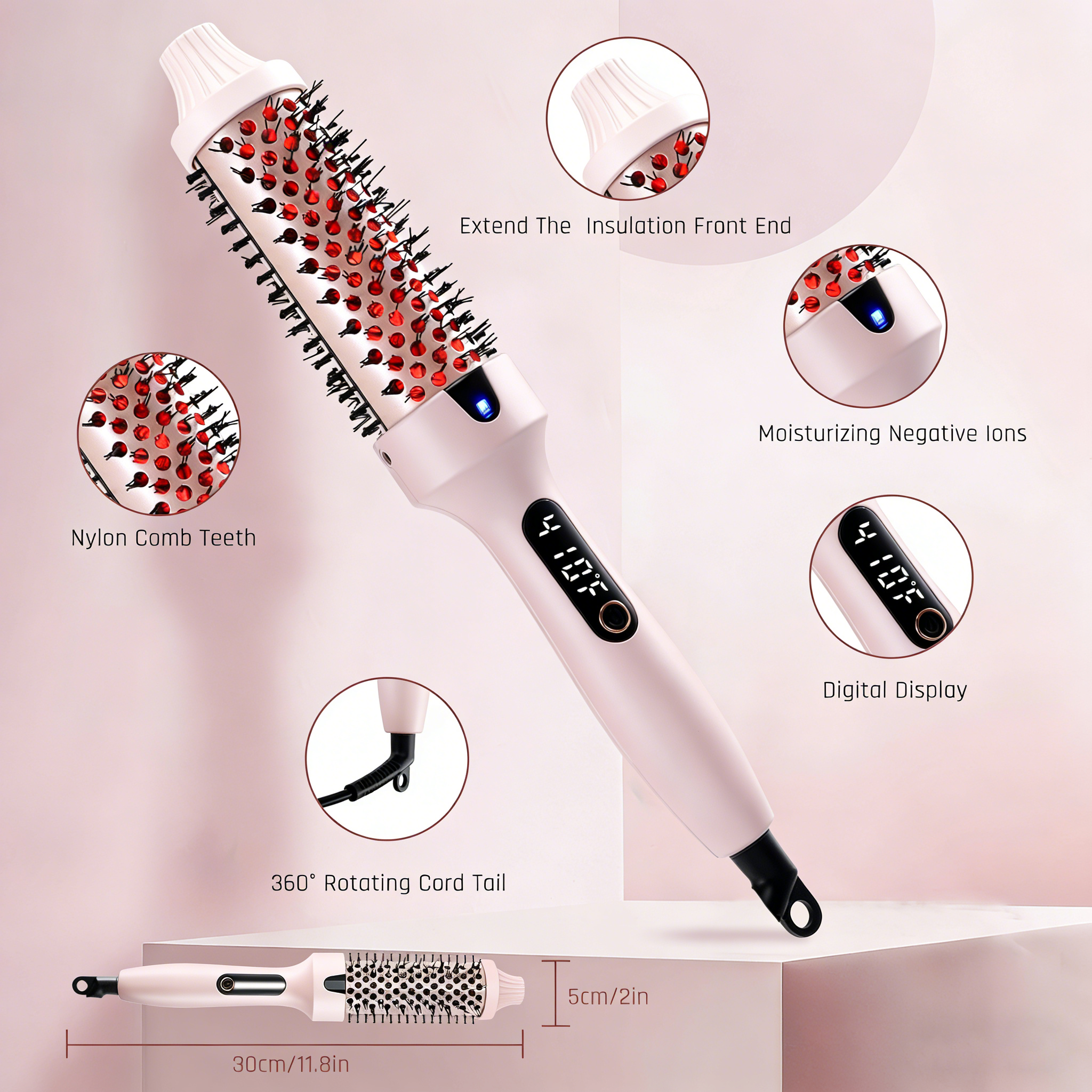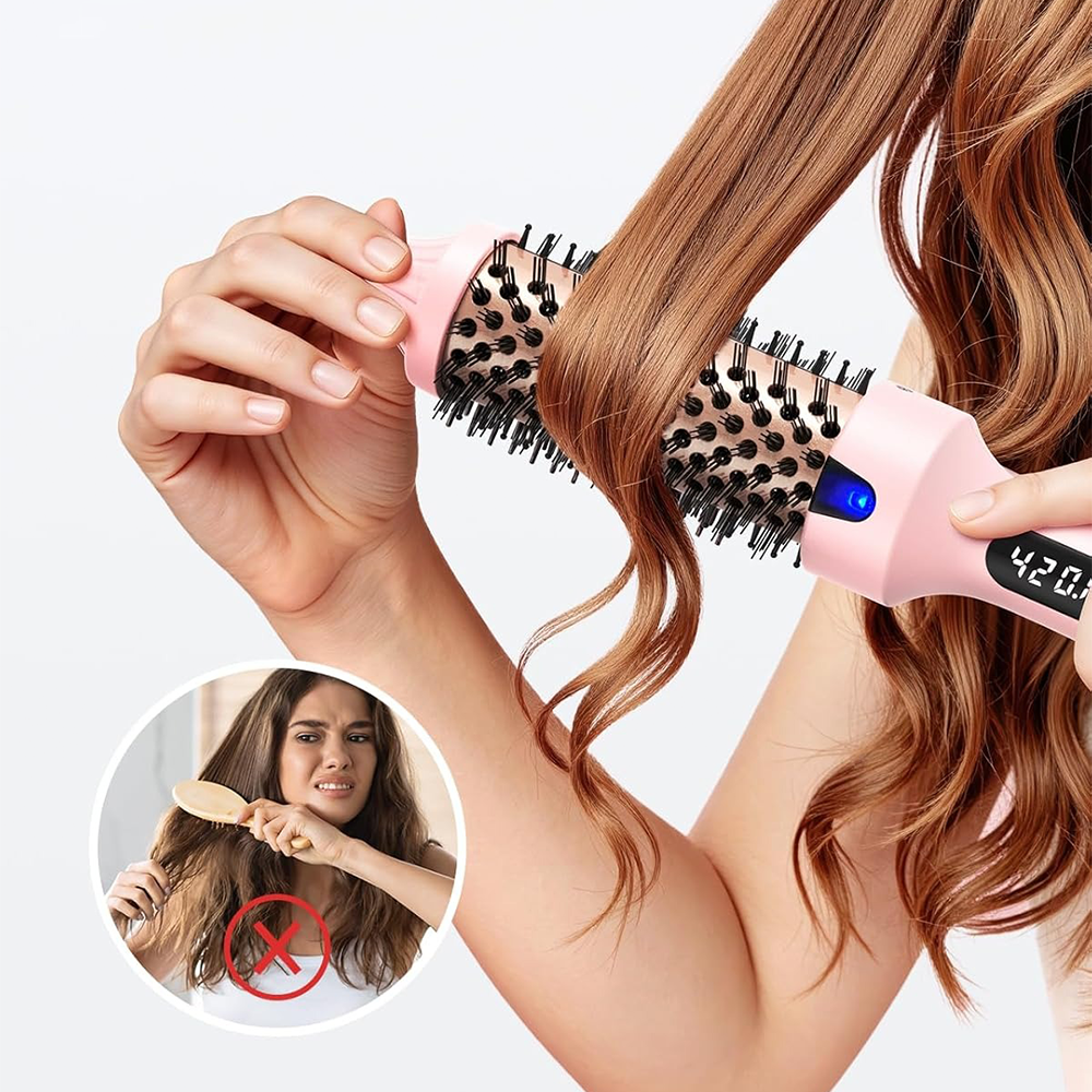 The Aegis Thermal Brush Curling Brush combines multiple smart features in a portable design. Its extended insulated front tip ensures safe styling, while moisturizing negative ions protect hair from frizz. Smooth nylon comb teeth glide effortlessly, and the 360° rotating cord allows flexible, tangle-free use. The digital display makes temperature control easy, making this compact brush perfect for styling anywhere, anytime.
